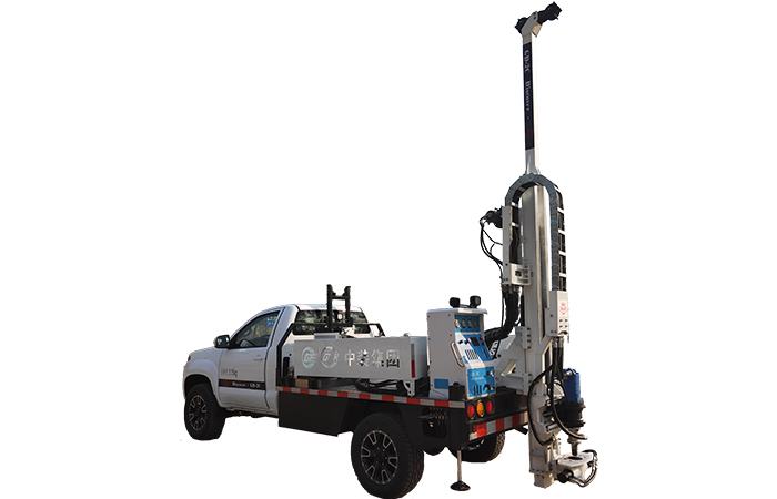 GD-2CA為越野皮卡底盤、全功率取力、全液壓驅(qū)動、具有頂驅(qū)鉆機系統(tǒng)及標(biāo)準(zhǔn)貫入系統(tǒng)新型鉆機車。主要用于地質(zhì)普查勘探孔施工、地質(zhì)爆破施工、工程地質(zhì)勘察孔施工、淺孔水井及天然氣探采、土壤取樣施工。